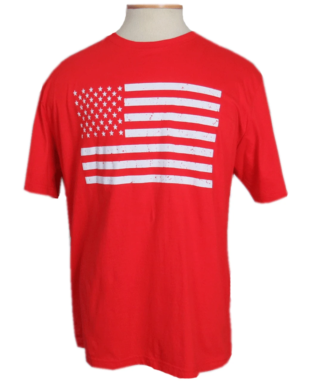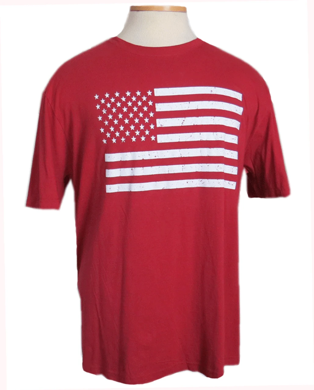 This graphic tee shirt is a Big and Tall Outlet Exclusive! It features the American Flag screen printed in white on the front of a high quality, light weight short sleeve t-shirt. Extra soft with a tagless design for everyday comfort. Fabric content: 100% Cotton.