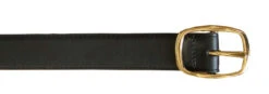 This brown leather belt by Canterbury is made of oil tanned cowhide. Perfect for work or casual wear, it has a weathered, broken-in look and sturdy construction. Gold tone buckle and double holders. 1 3/8″ width.Â