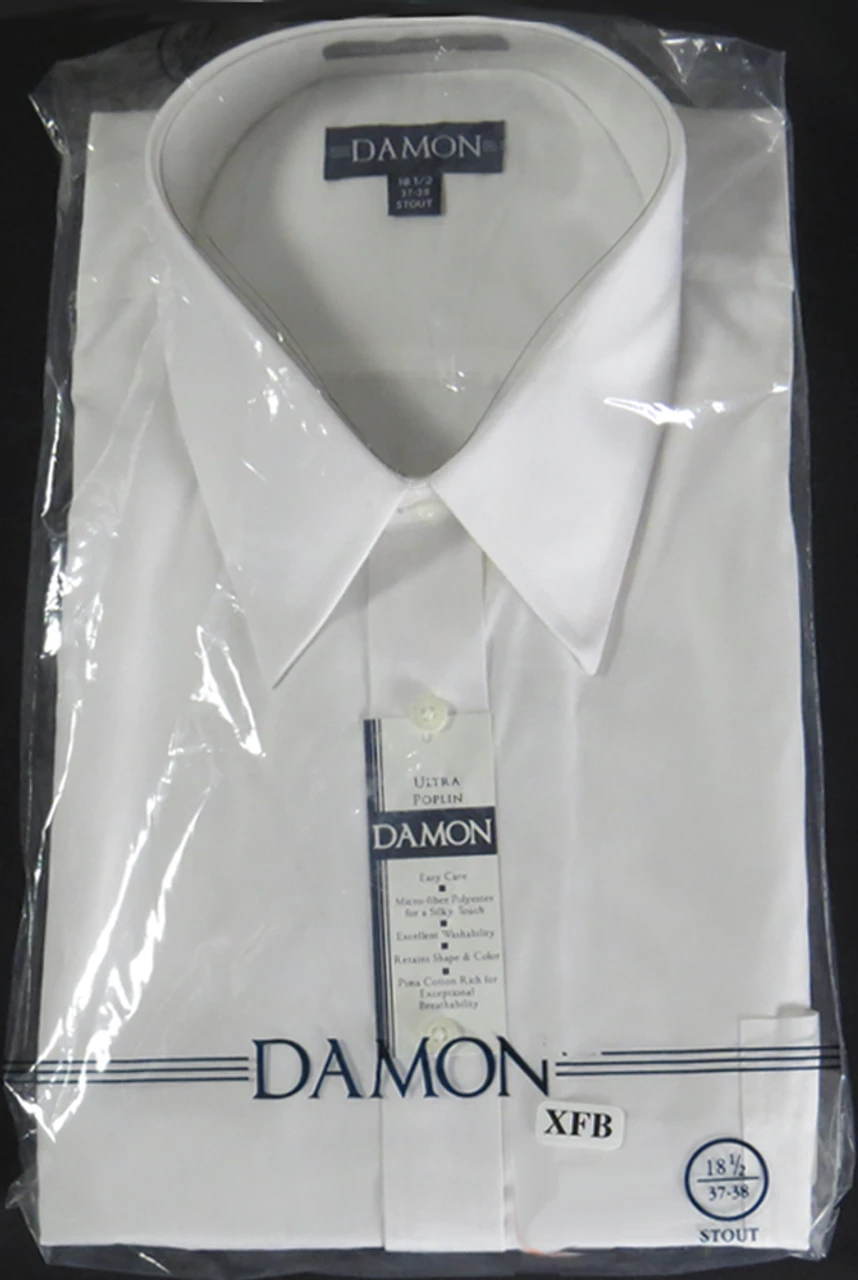 This Ultra Poplin Easy Care Dress Shirt by Damon is Easy Care and Easy to Wear. Made of a blend of micro-fiber polyester for a silky touch and pima cotton for breathability. With excellent washability, it retains its shape and color, wash after wash. The Stout Fit is cut extra full in the body. Fabric content: 55% Cotton, 45% Polyester.