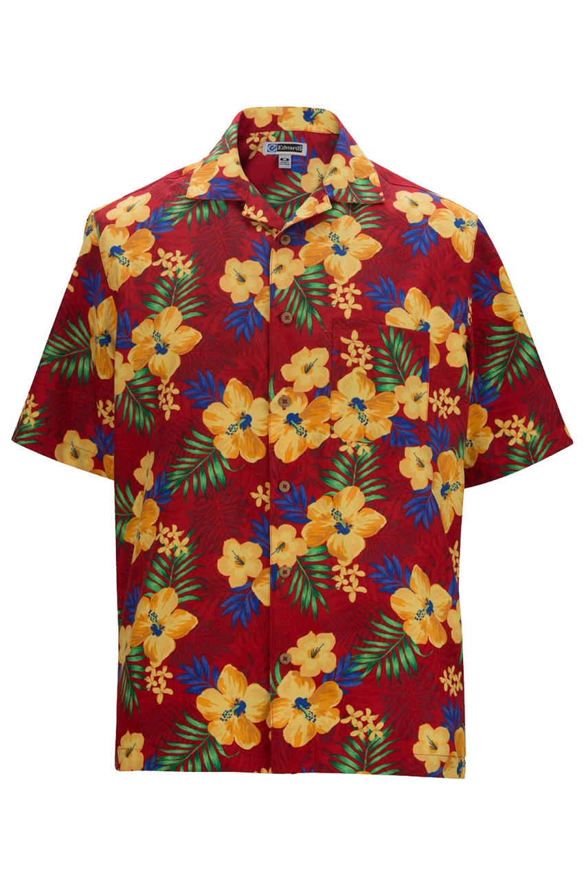Colorful and stylish this shirt is carefree, fun to wear and offers all day comfort. The soft fabric has a playful hibiscus pattern that stands out in a crowd. Multi-color hibiscus print with vibrant colors accent this soft and supple fabric. Classic camp style, open neck with notched collar, full cut, left chest pocket and side vents at hem. Features natural buttons on placket, straight back yoke seam and two shoulder seams. Wrinkle resistant, soil release and moisture wicking for comfort and easy care. Fabric content: 100% Polyester.