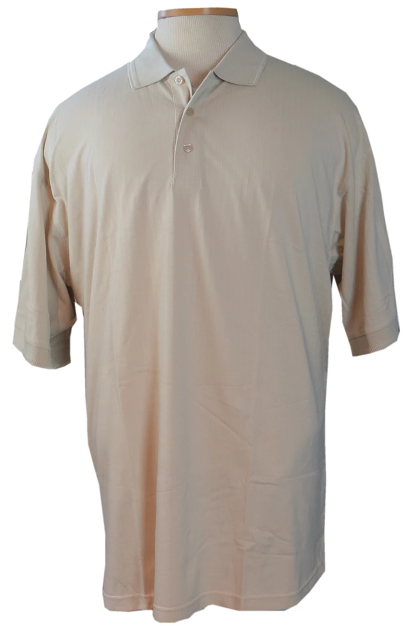 This solid color knit polo by Extreme is the perfect addition to your business casual wardrobe. It features a tonal herringbone pattern and jacquard self collar and cuffs. Three button placket clean finished with topstitching detail, shoulder and neck tape for durability. Straight hem with side slits. Fabric content: 60% Combed Cotton, 40% Polyester.