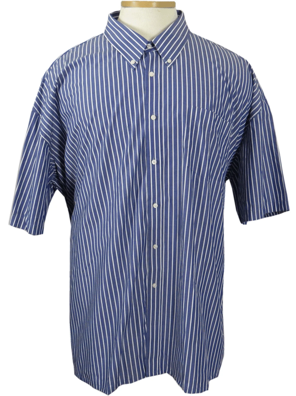 Look great for any occasion from business casual, to dinner out, with this Easy Care Sport Shirt by Falcon Bay. This Gold Label Collection fine cloth shirt features single needle tailoring, straight hem, left chest pocket and button down collar. Classic navy and white stripe pattern that is perfect for all season wear. Fabric Content: 100% Cotton.