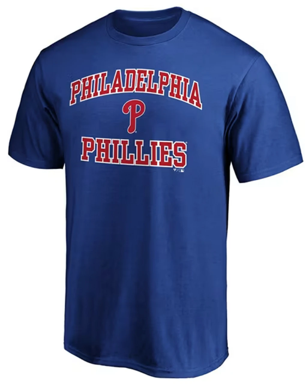 Phillies fans, show your Philadelphia pride in this short sleeve tee shirt by Fanatics. It features Philadelphia Phillies team graphics screen printed on the front of a high quality mid-weight 100% Cotton tee shirt. Officially licensed MLB merchandise.