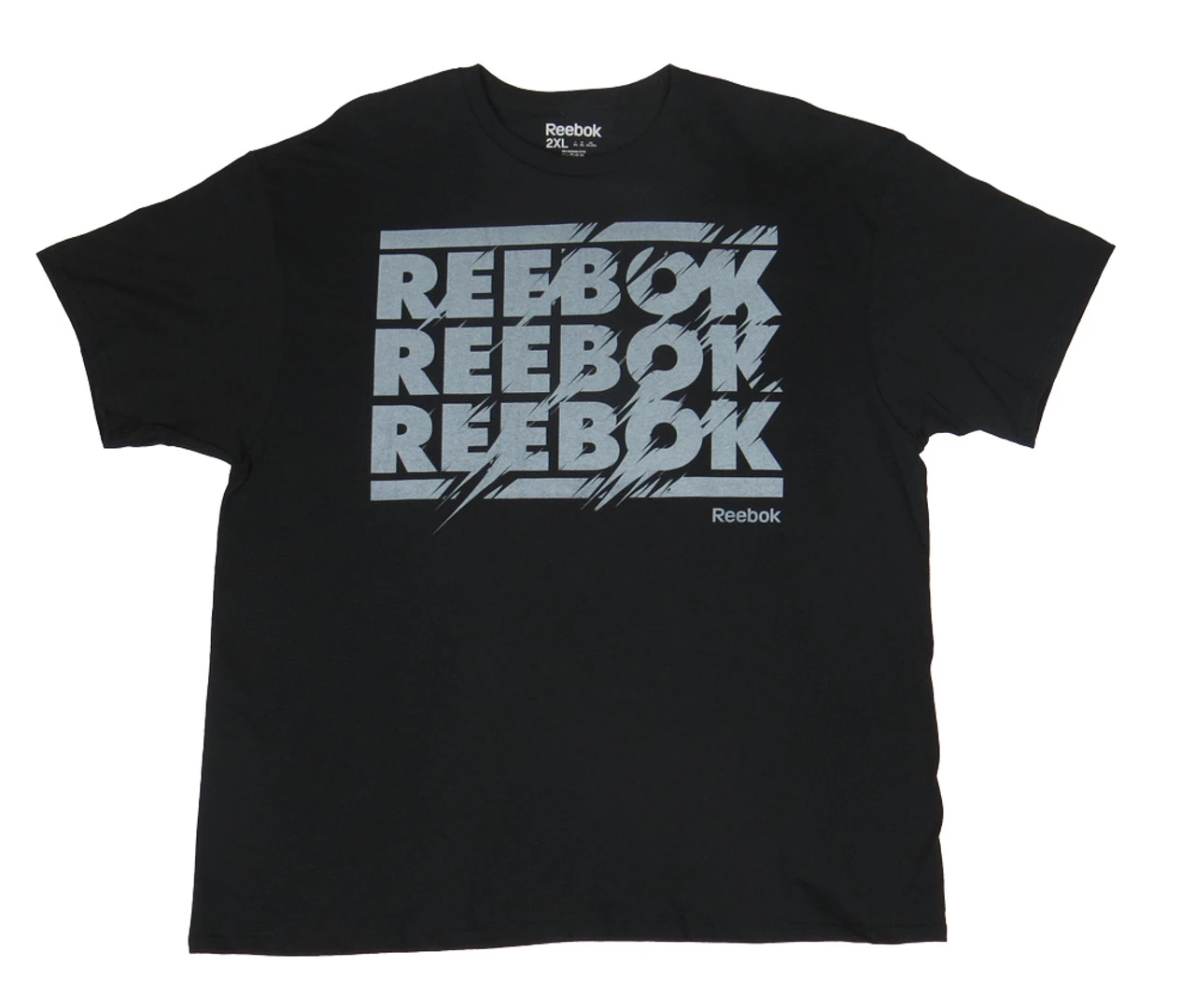 Reebok 100% preshrunk cotton tees have the “Broken” print on the front.