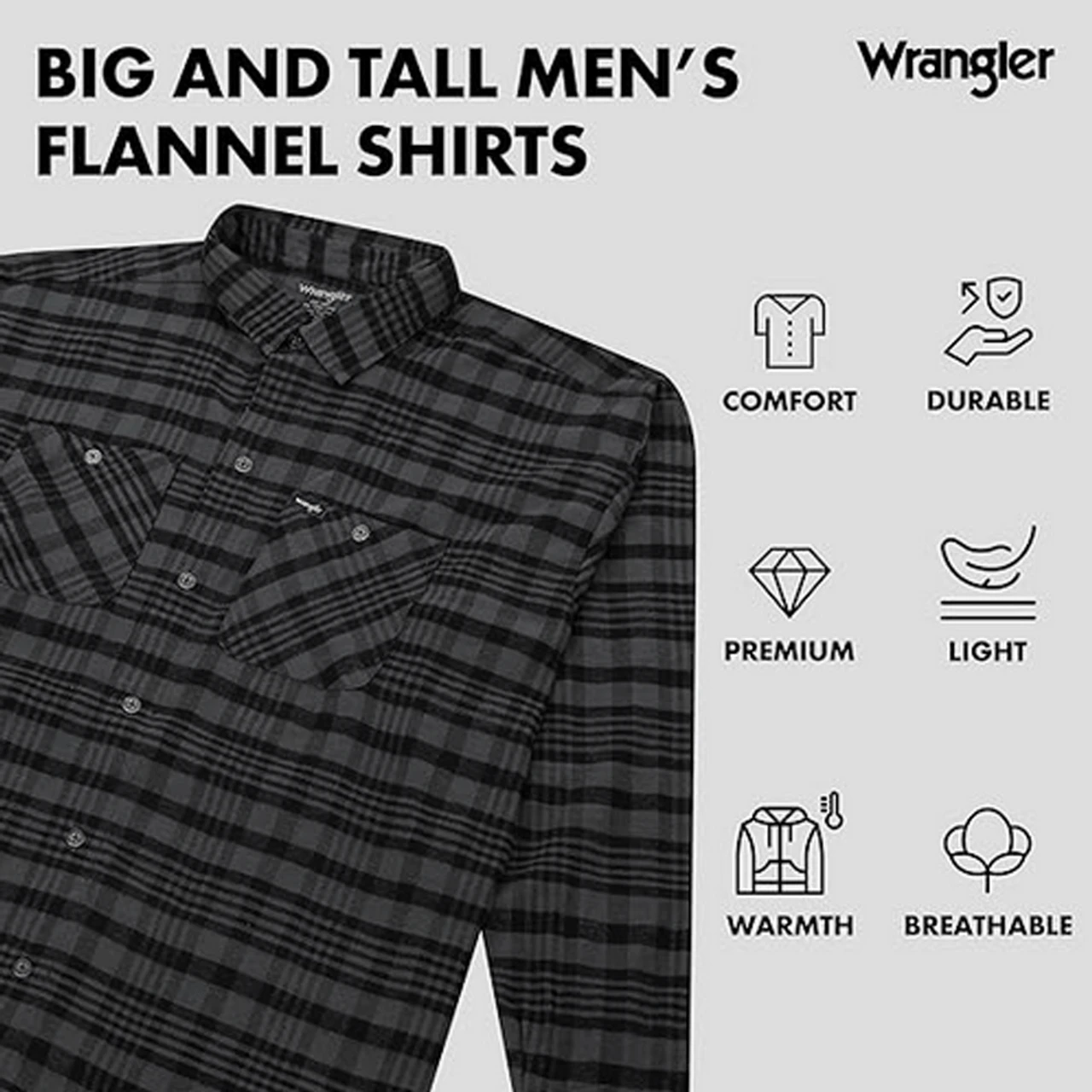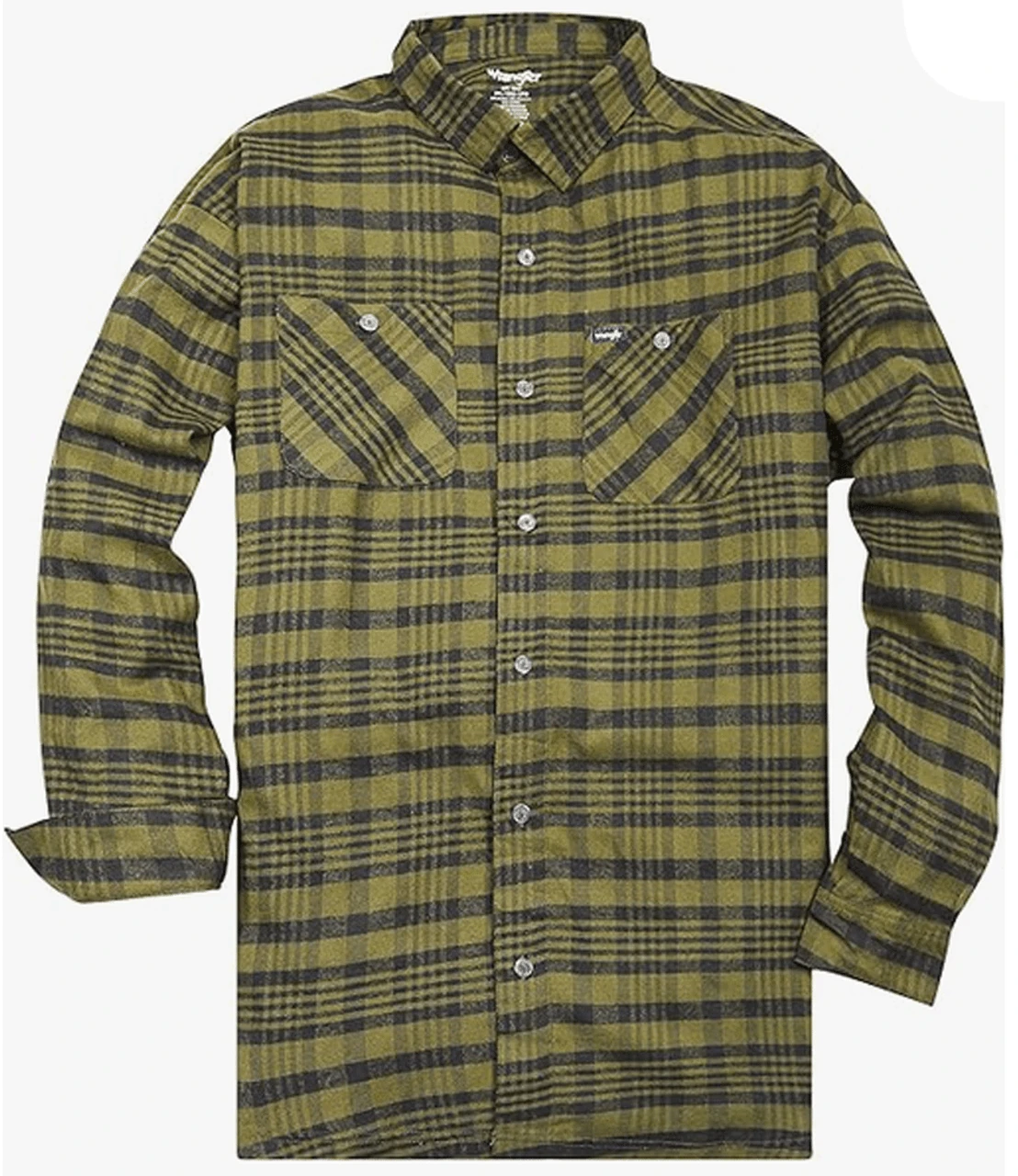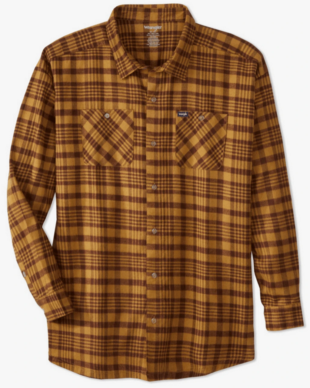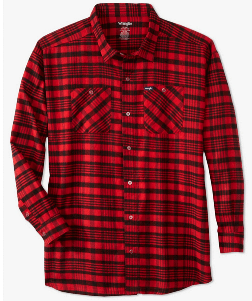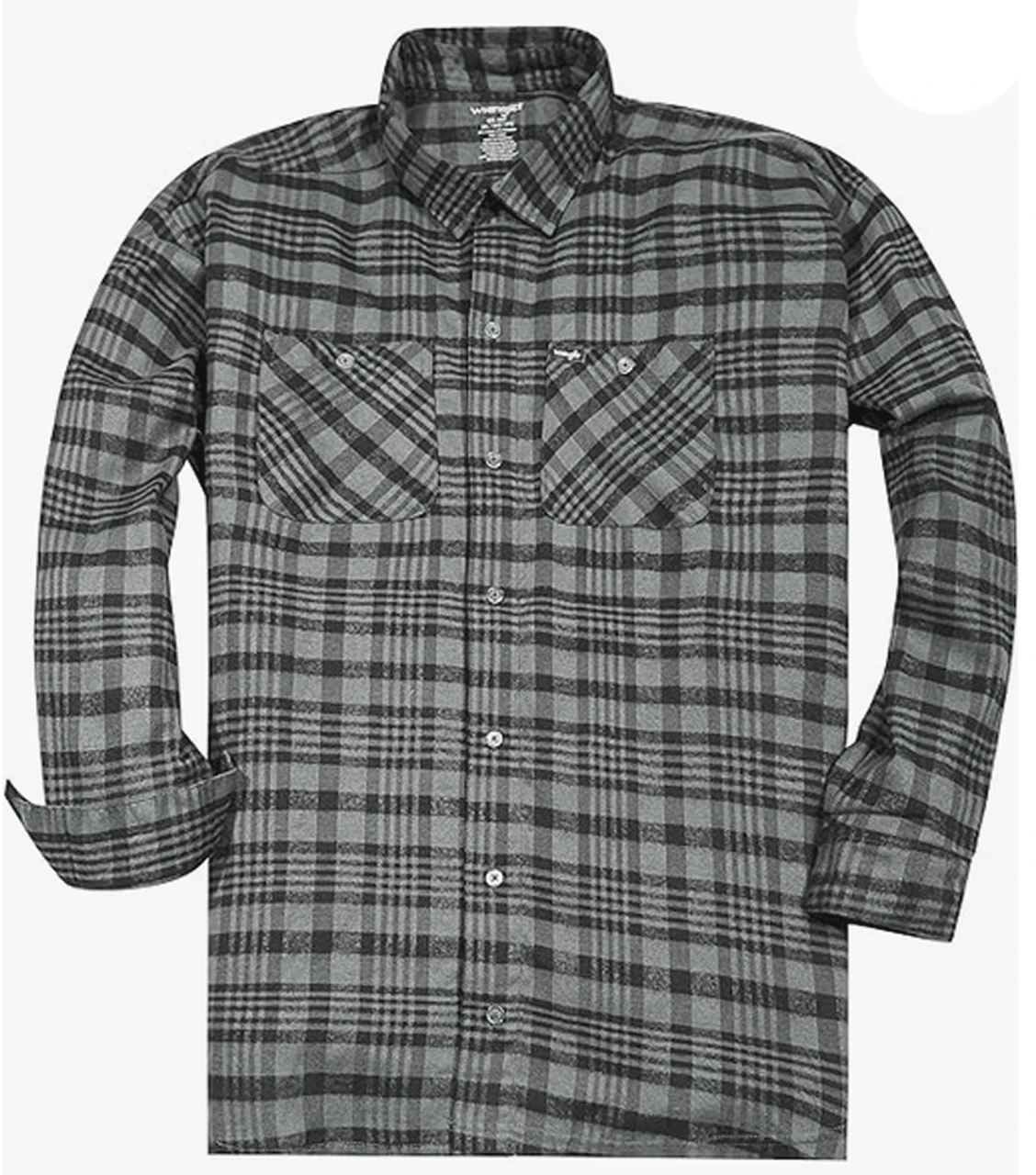 These long sleeve flannel shirts by Wrangler are designed for warmth and comfort. Made of durable, light and breathable fabric, perfect for layering in colder weather. With a western style and classic plaid patterns, they look great fully buttoned or worn open over a t-shirt.  Features two front pockets, button cuffs and Wrangler logo on the left chest pocket. Pair with your favorite jeans for work, relaxing, indoor or outdoor activities. Fabric Content: 60% Cotton, 40% Polyester.